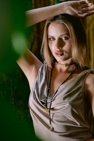 Black Spinel Multiway Necklace with Leopard Connector