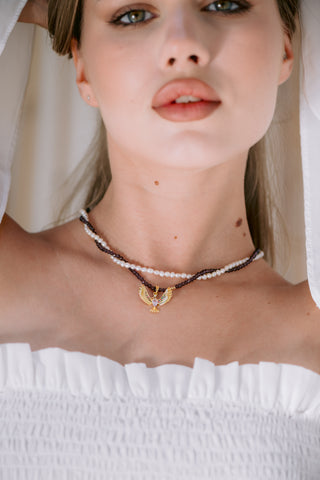 Amethyst & Pearl Two-Layer Necklace with Phoenix Pendant