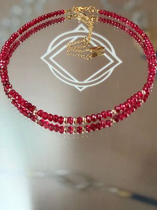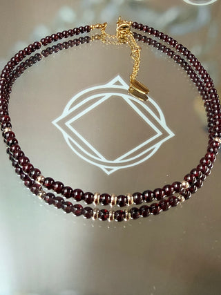 Dark Red Garnet Necklace with Gold-Plated Accents