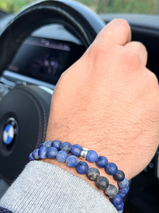 Blue Sodalite, Matte Labradorite & Black Lava Men’s Bracelet – 925 Sterling Silver