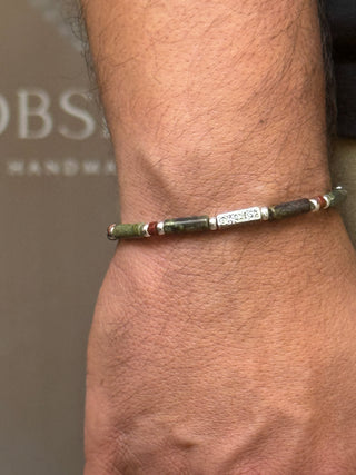 Dragon Blood Jasper & Picasso Jasper Men’s Bracelet – 925 Sterling Silver