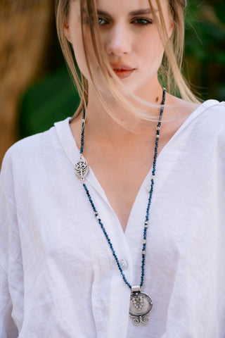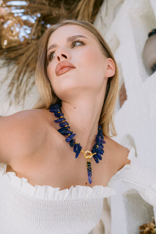 Finest Garnet Necklace with 925 Silver & 18K Gold-Plated Details