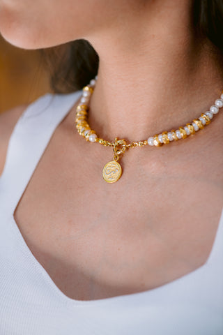 Freshwater Pearl Necklace with Matte Gold Plated Accents