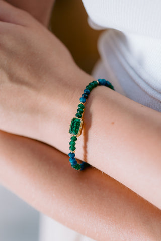 Green & Blue Jade Bracelet with Gold-Plated Accents